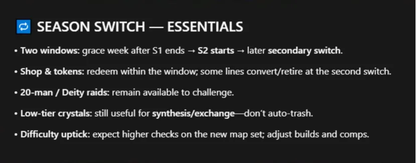 This update on the CN client followed a phased release model, with content rolling out in waves throughout the season. Accordingly, the development team advised all players to spend any Season 1 exclusive currencies before the season transition.