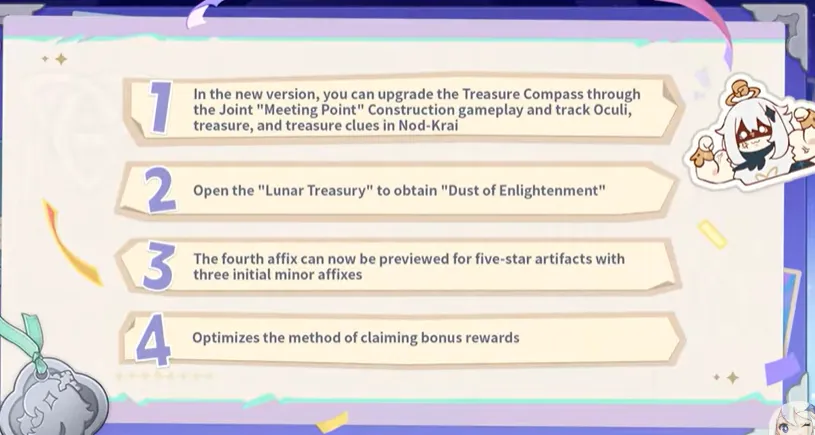 Additionally, the new version introduces a feature that allows players to obtain 5-star character constellations as rewards. By completing eight specific objectives, players can exchange for a character constellation. According to the preview, up to four character constellations can be acquired per year, and each can only be claimed once.