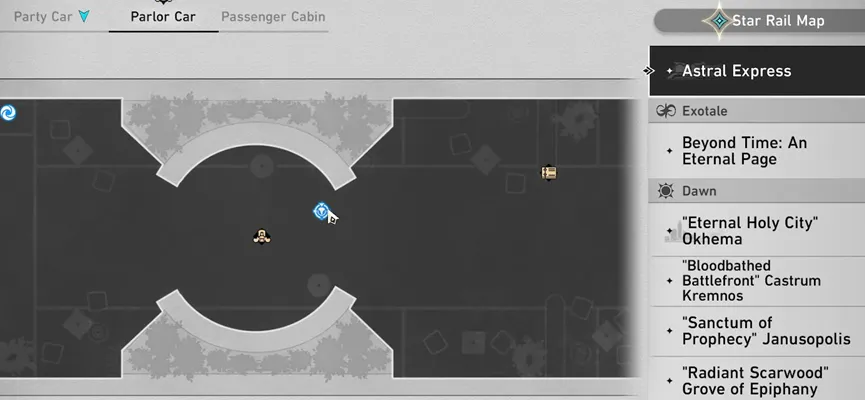 Return to The Parlor Car, the main subarea aboard the Astral Express. |