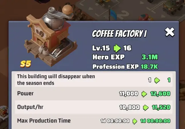Pro Tip: Switch to the Engineer Profession for the first few weeks! The resource cost reductions apply directly to seasonal resources, letting you upgrade your Coffee Factories much faster than other professions.
