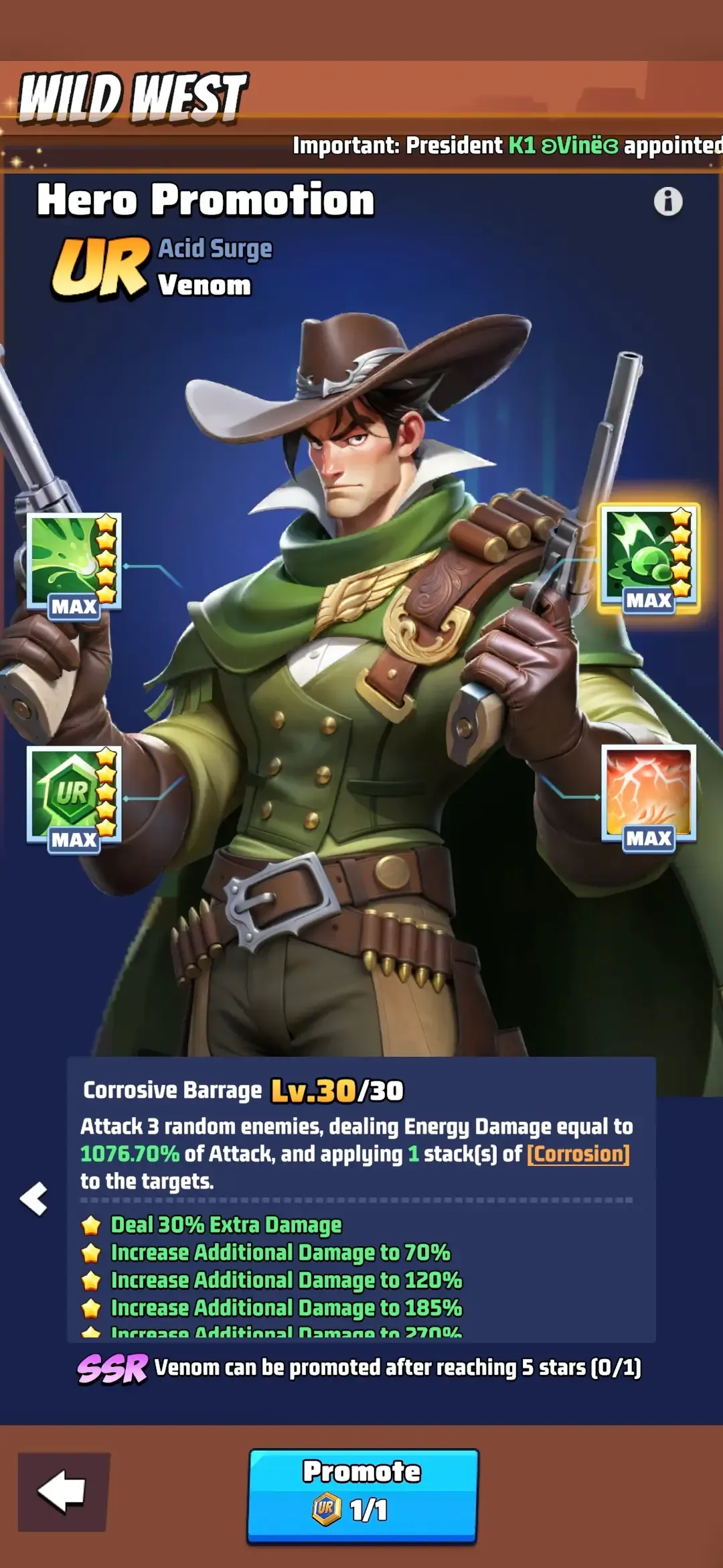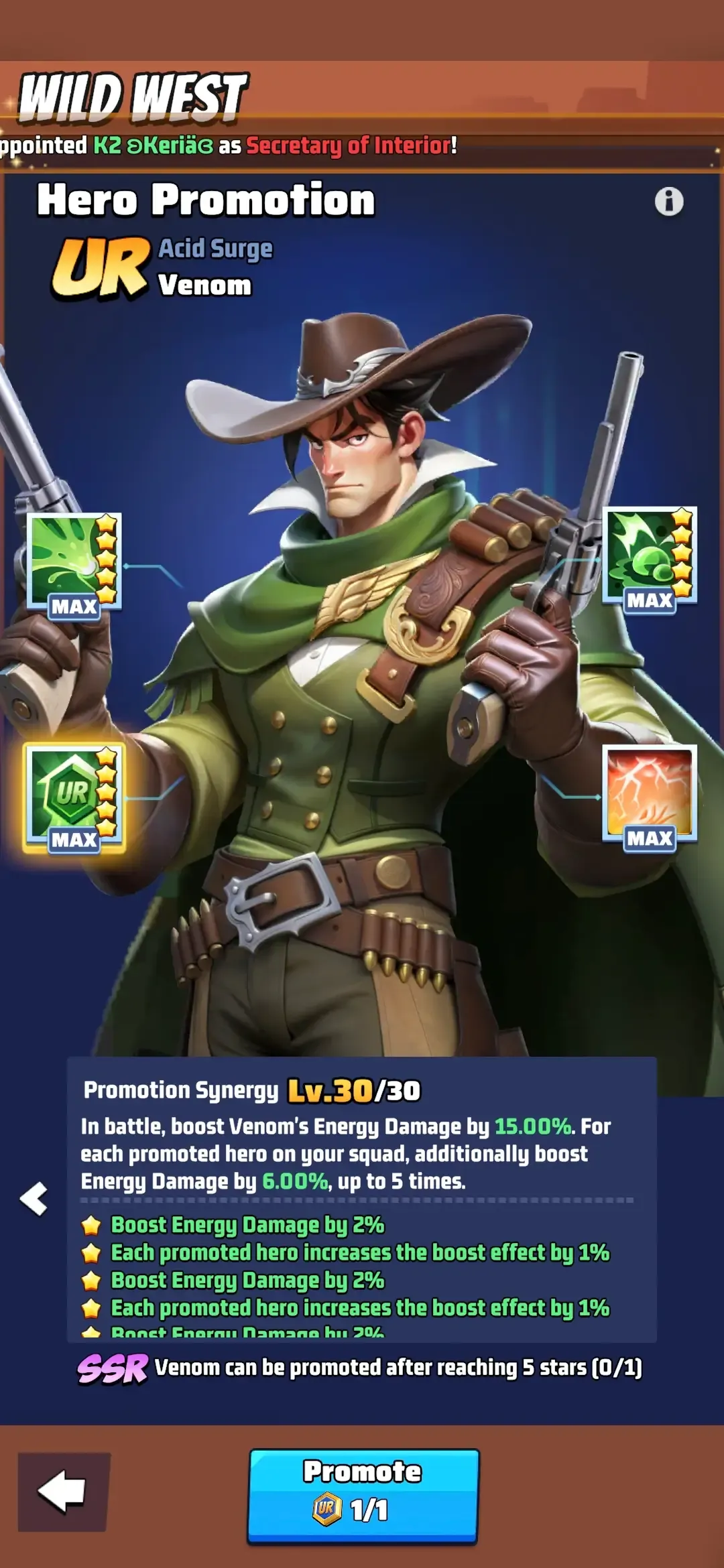 - Hero Updates: Venom can officially be promoted from SSR to UR! Stetmann’s Exclusive Weapon unlocks on Thursday. You will also receive 2 Hero Swap tickets to swap levels and stars between two heroes.