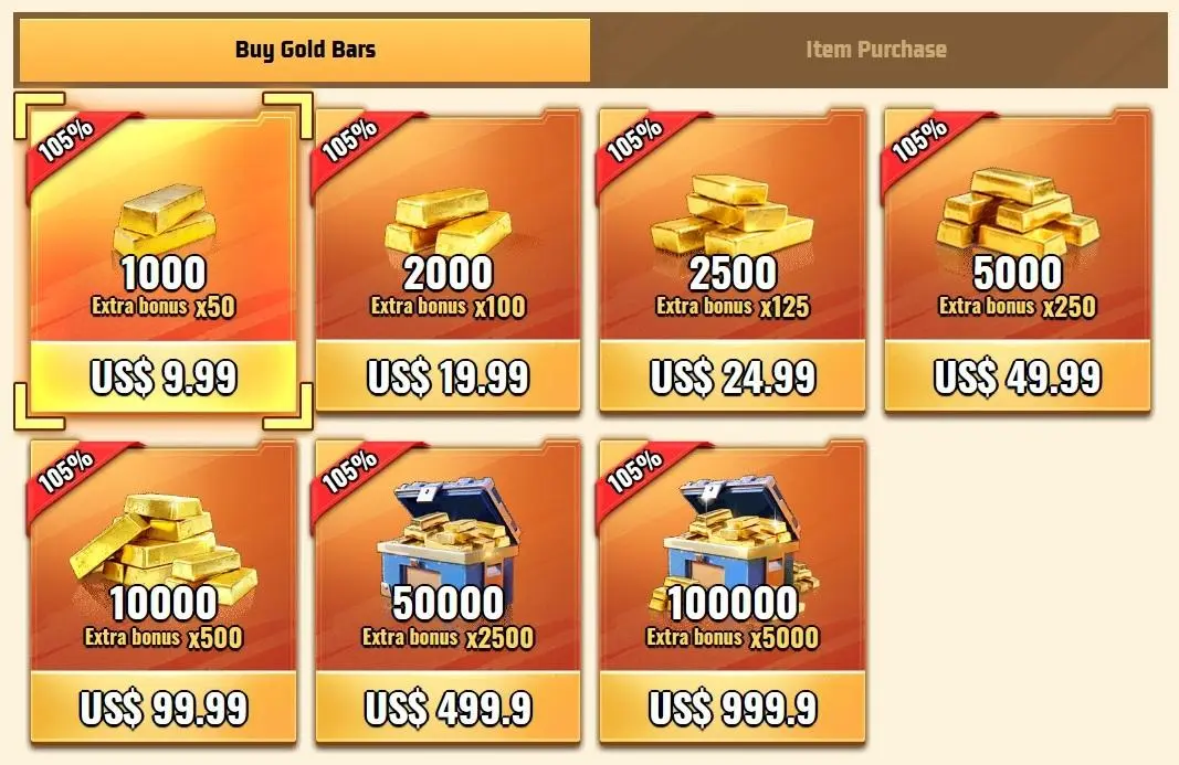 - If your Gold Bars don’t show up right away after recharging, just refresh the page.