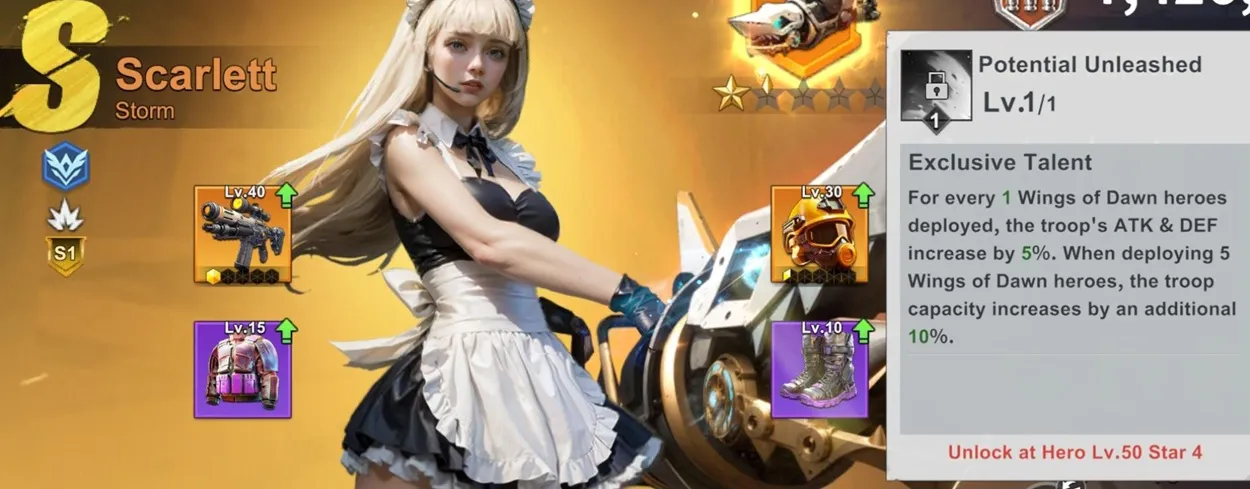 Wings of Dawn heroes like Scarlett, Isabella and Natalie are excellent when you pair them with shooters. This combination is very balanced and using this you can deal good damage from long range but still maintain your stamina in battle. The Wings of Dawn heroes provide buffs like increased attack speed, higher health and defensive bonuses that help the shooter troops a lot. This combination is very good for fighting against heavy melee enemies like assaulters with strong defensive formations. This is because your shooters can easily target the attackers from a distance and they also have enough defensive power so that they are not instantly crushed by the attackers.