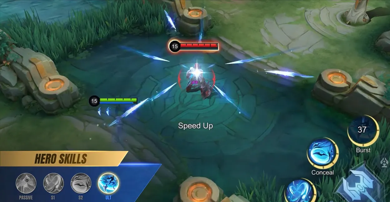 Aamon’s passive ability is called “Invisible Armor” which is said to be based down as a generational thing in Aamon’s bloodline. The passive ability triggers whenever aamon’s skill hits an enemy and lets aamon enter the camouflage state. During the camouflage state, he becomes untargetable, gains 60% extra movement speed and restores 25 (+15% of Total Magic Power) (+3% of Lost HP) HP per 0.6 seconds.