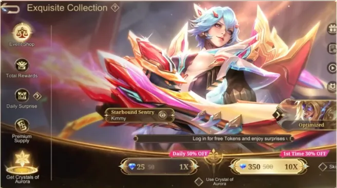 The Grand Collection’s name is changed to Exquisite Collection which uses the gacha draw system for Collector skins. The prizepool will be updated and available on the very first day of every month. Each draw will cost 50 diamonds and for the very first draw of the day, you will get a 50% discount and can draw for only 25 Diamonds. For a 10x draw, you will have to spend 500 diamonds which will be discounted by 30% for the very first 10x draw, resulting in a deducted cost of only 350 Diamonds. A special skin is guaranteed in the first 10x draws.