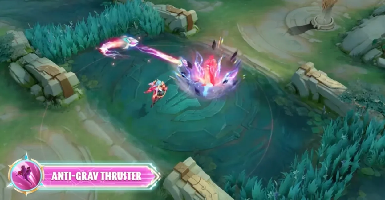Kimmy’s Anti Grav Thruster looks like she is firing literal cosmic meteorites at the enemy which will blow them apart.