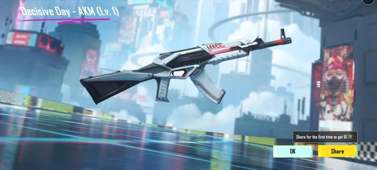 X-Suits help to make your outer appearance better to other people. But weapon skins can make your actual gameplay better. The Decisive Day AKM is a perfect example of this. This was not like other AKM skins. It had a balanced look with clear and smooth animations as well. When it was first released you could get it as a reward from a limited time event. After that the skin was not available anymore.