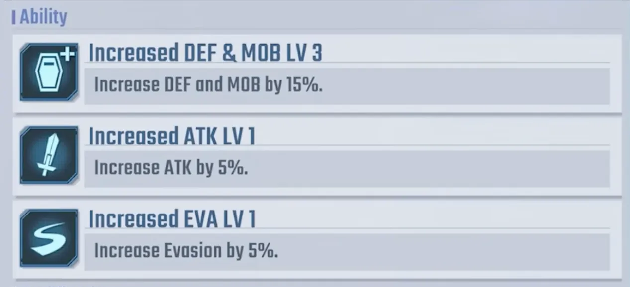 - Increased ACC and EVA LV3 (SP5): +25% ACC/EVA (1 turn).