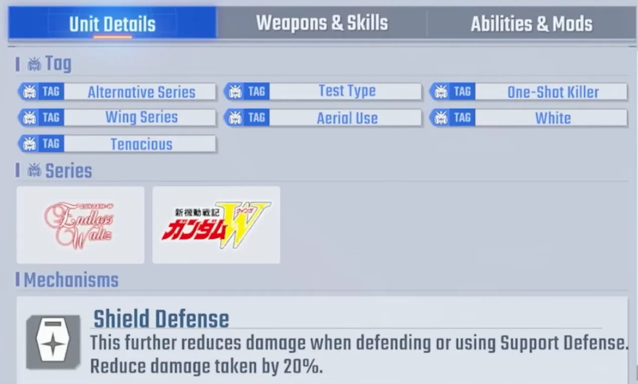 Tallgeese III's tags are "One-Shot Killer" and "Tenacious." The One-Shot Killer tag already has core units like Strike Freedom, Double X, and God Gundam, and Tallgeese III's damage cannot compete. The Tenacious tag lacks a supporter, making its future uncertain. Its role is more of a "nice to have if you pull it, no loss if you don't" companion unit.