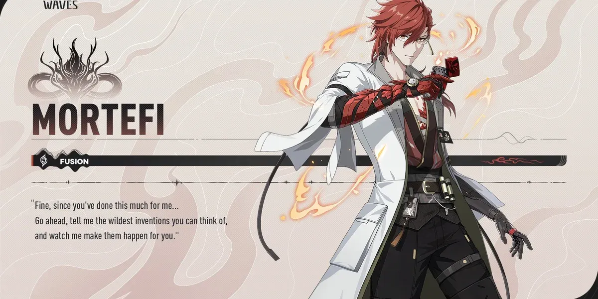 Mortefi is a 4-star Hybrid character who wields a Fusion Pistol. When built properly, he can deal solid damage, but he really excels in a more supportive role—especially when paired with teammates whose damage mainly comes from Heavy Attacks. This is due to his Ultimate Skill synergizing with Heavy Attacks, and his Outro further boosting them by 38%.
