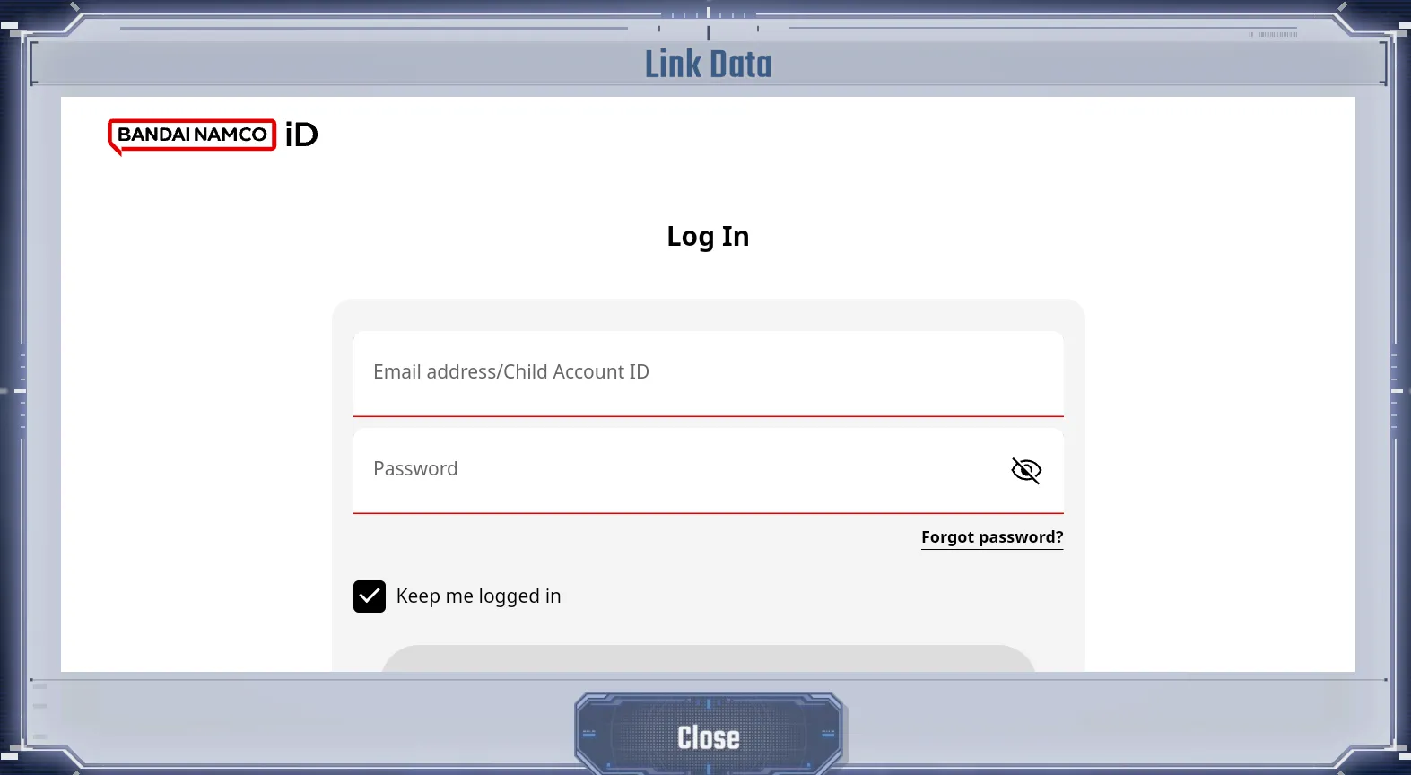 Bandai Namco ID (dirección de correo - solo cuenta oficial) y contraseña
