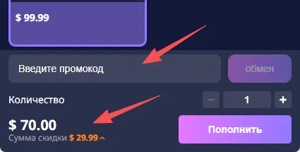 Скопируйте этот код, перейдите в личный кабинет, вставьте его и обменяйте — скидка будет применена при оформлении заказа. Нажмите на кнопку ниже, чтобы перейти на страницу пополнения!