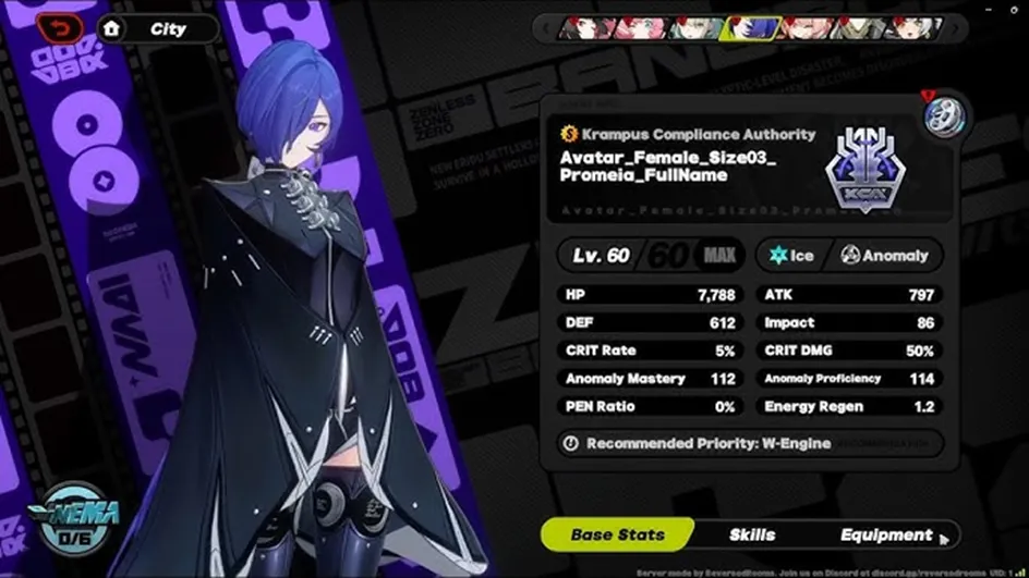 Промея — агент со специализацией на ледяной аномалии, подобно Мияби, и, скорее всего, станет её прямой заменой. У неё будет возможность сформировать команду с персонажем из версии 2.7 — Наньгун Юй