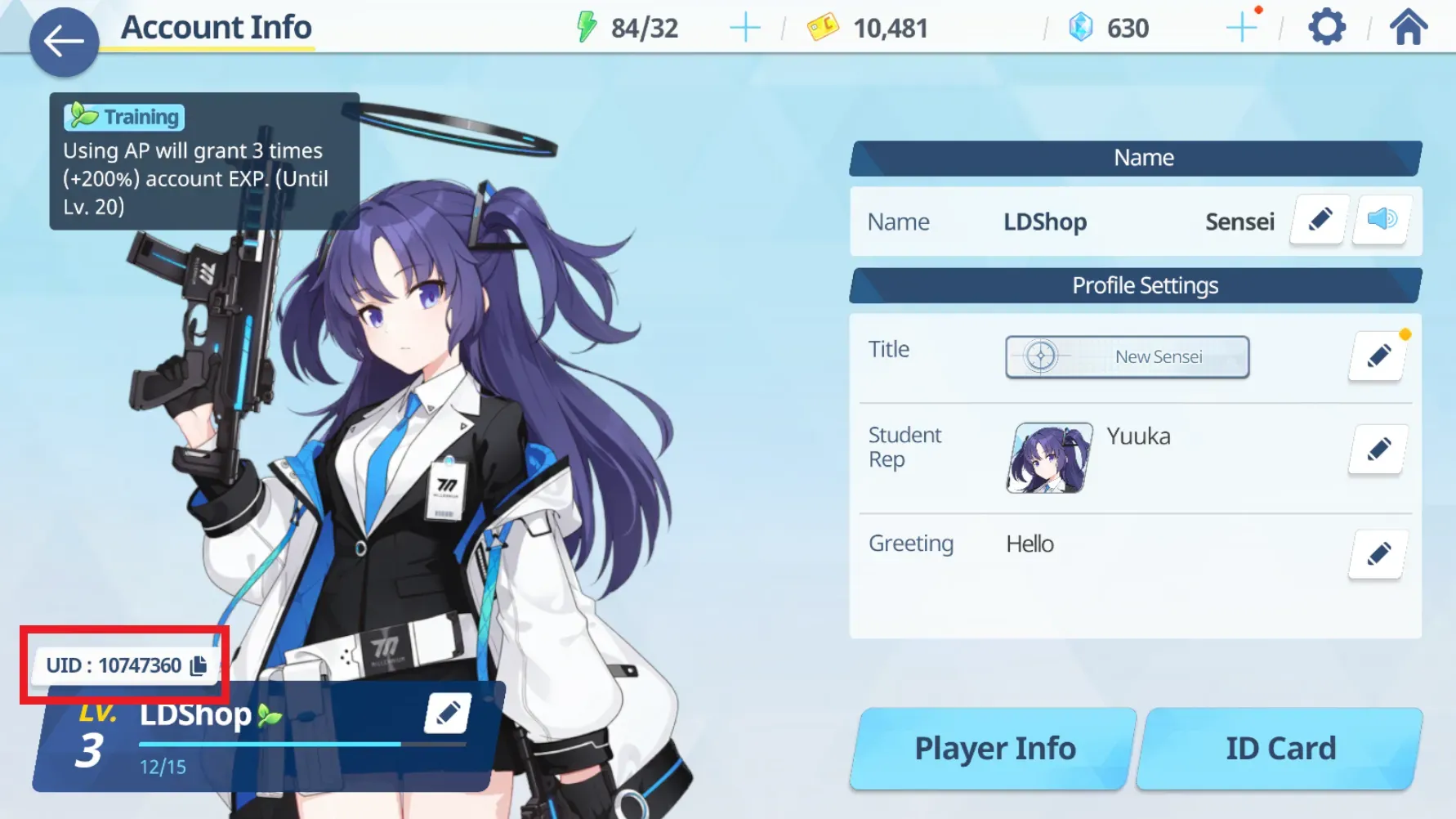 - UID игры: ID аккаунта Blue Archive