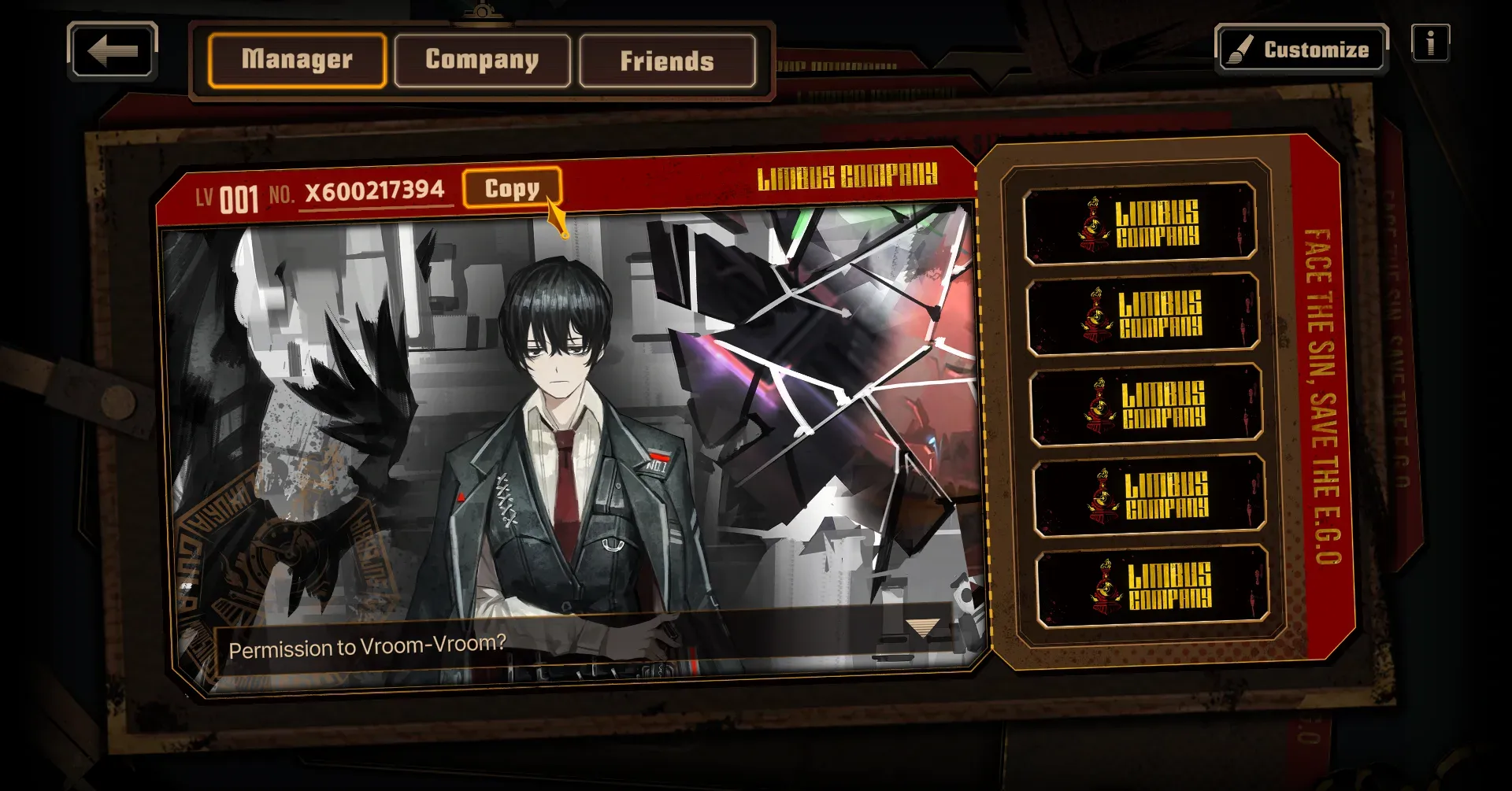 • Игровой UID: ID аккаунта Limbus Company