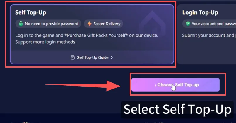 1. Select [Self Top-Up] after ordering: After selecting the product, placing the order, and completing the payment, choose [Self Top-Up].