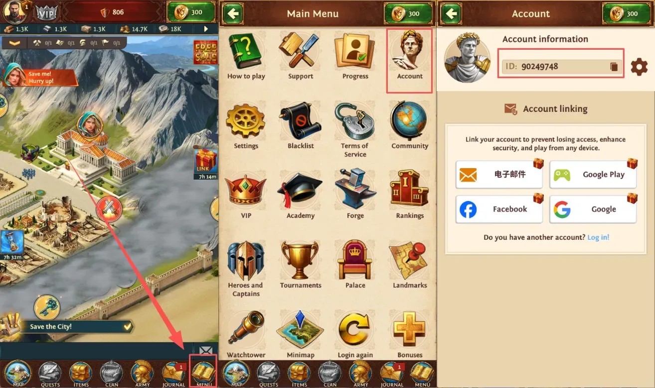 • Game Account:  your Total Battle Account & Password/Verification code