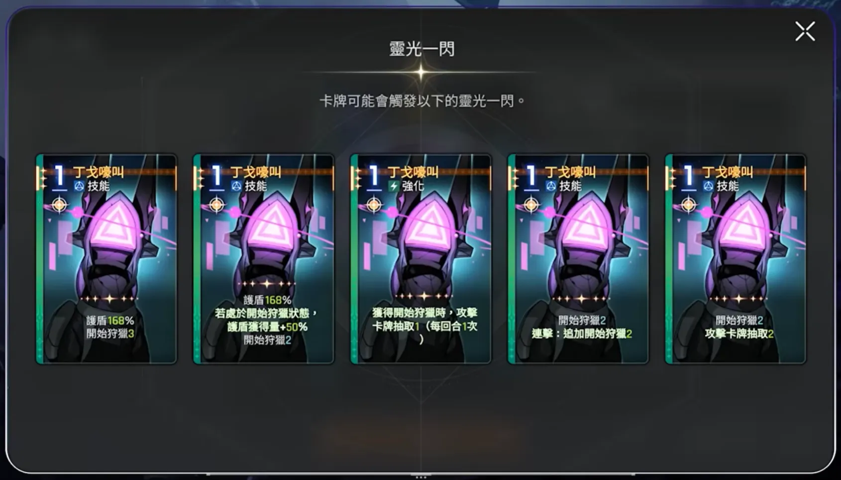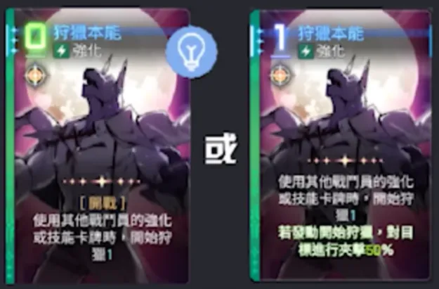 這些卡牌都能在不同條件下增強「開始狩獵」效果或提供護盾與過牌能力。