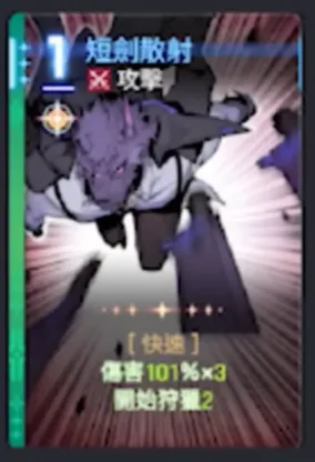 「短劍散射」:單體打3次,「開始狩獵2」,面對單體怪時穩定疊層。