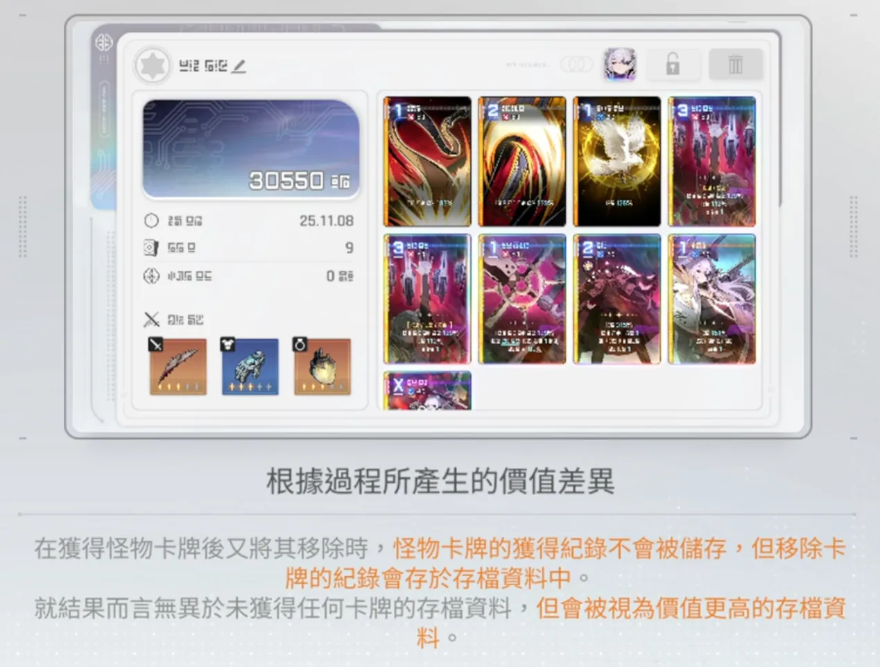 存檔成功與否全看PT值,難度越高、階級越高,上限也越高。神閃、中立牌、刪除與複製都會消耗PT,而怪物卡與刪除初始牌是最大的PT陷阱。策略核心是「複製優於刪除」,並時刻留意右下角的PT值,避免超額導致存檔失敗。