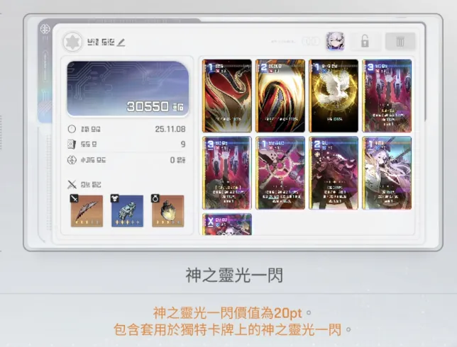 刪3張基礎牌(10PT)+ 複製2次(10PT)= 20PT → 剩餘空間帶神閃