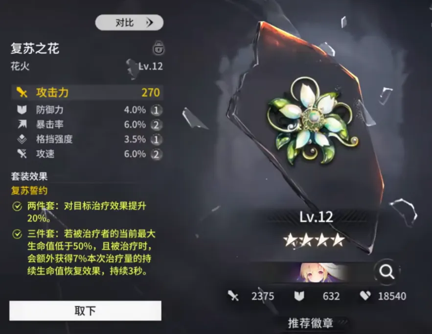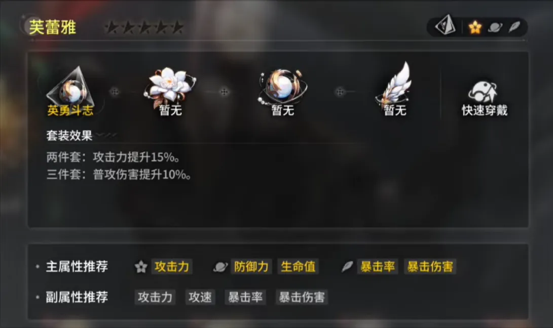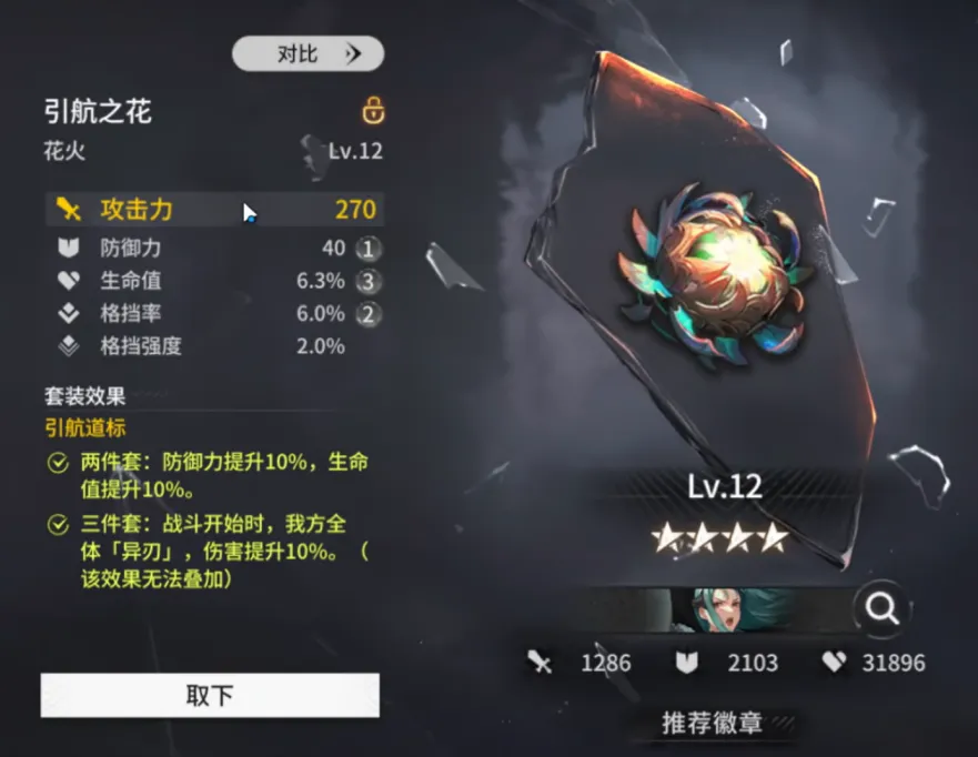 裝備方面建議選擇引航之花套裝,該套裝效果與角色技能相性最佳。