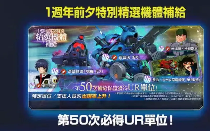 這兩部作品的開發機體、角色也會同步進池,週年慶直接雙倍高潮!