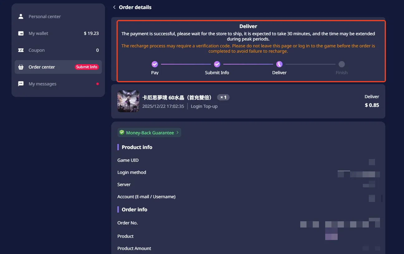 LDShop 是全球玩家首選的遊戲儲值平台,為卡厄思夢境提供安全又實惠的儲值方案: